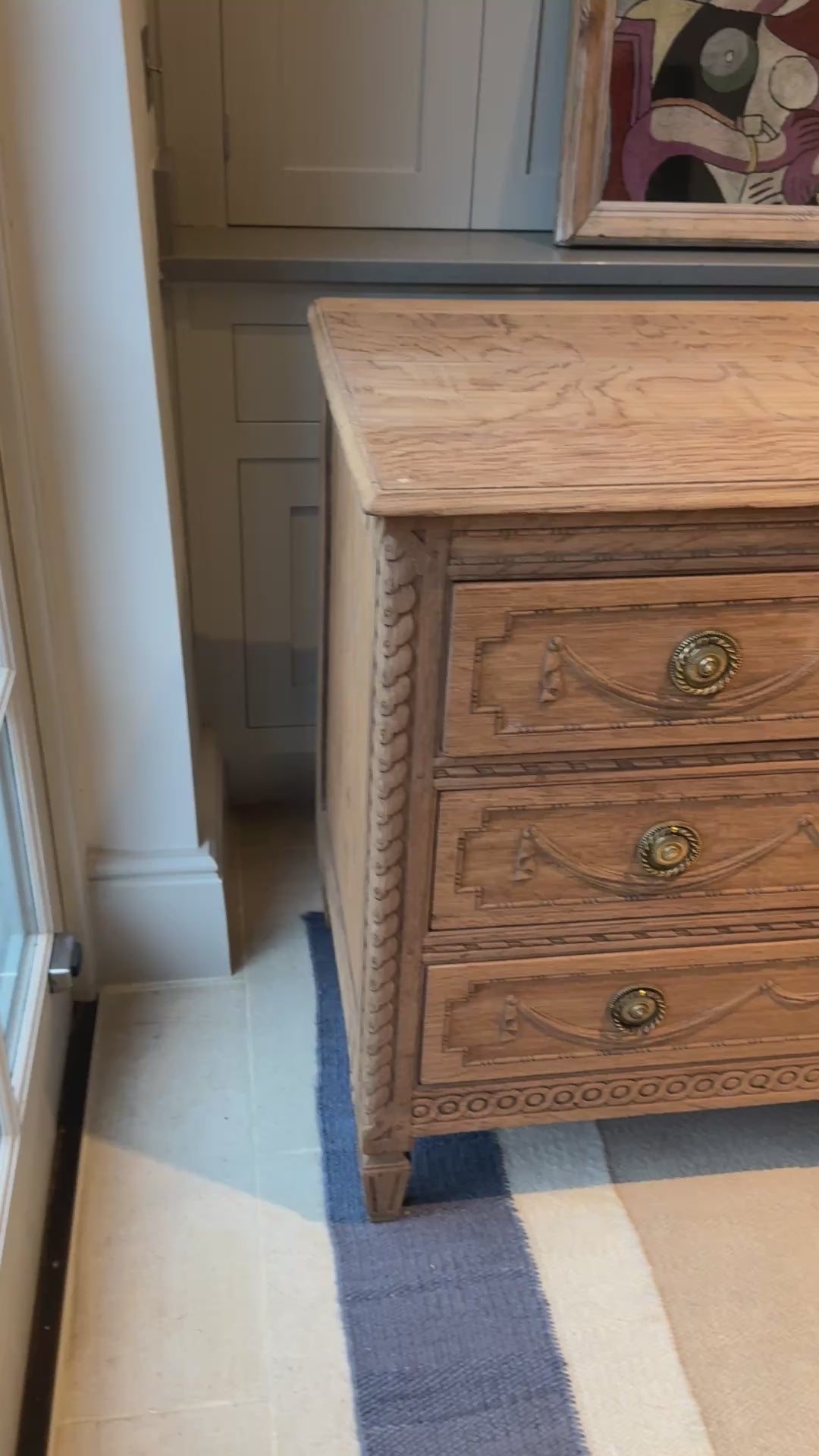 Highly decorative bleached oak commode with carved wood detail throughout. It’s an immaculate piece.