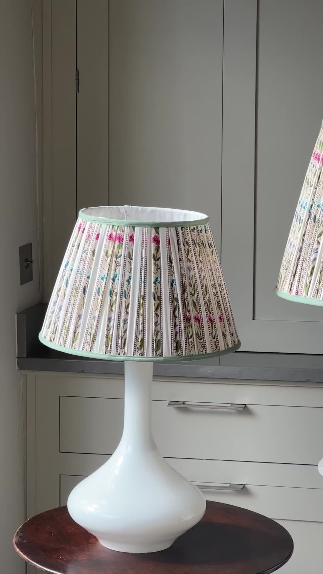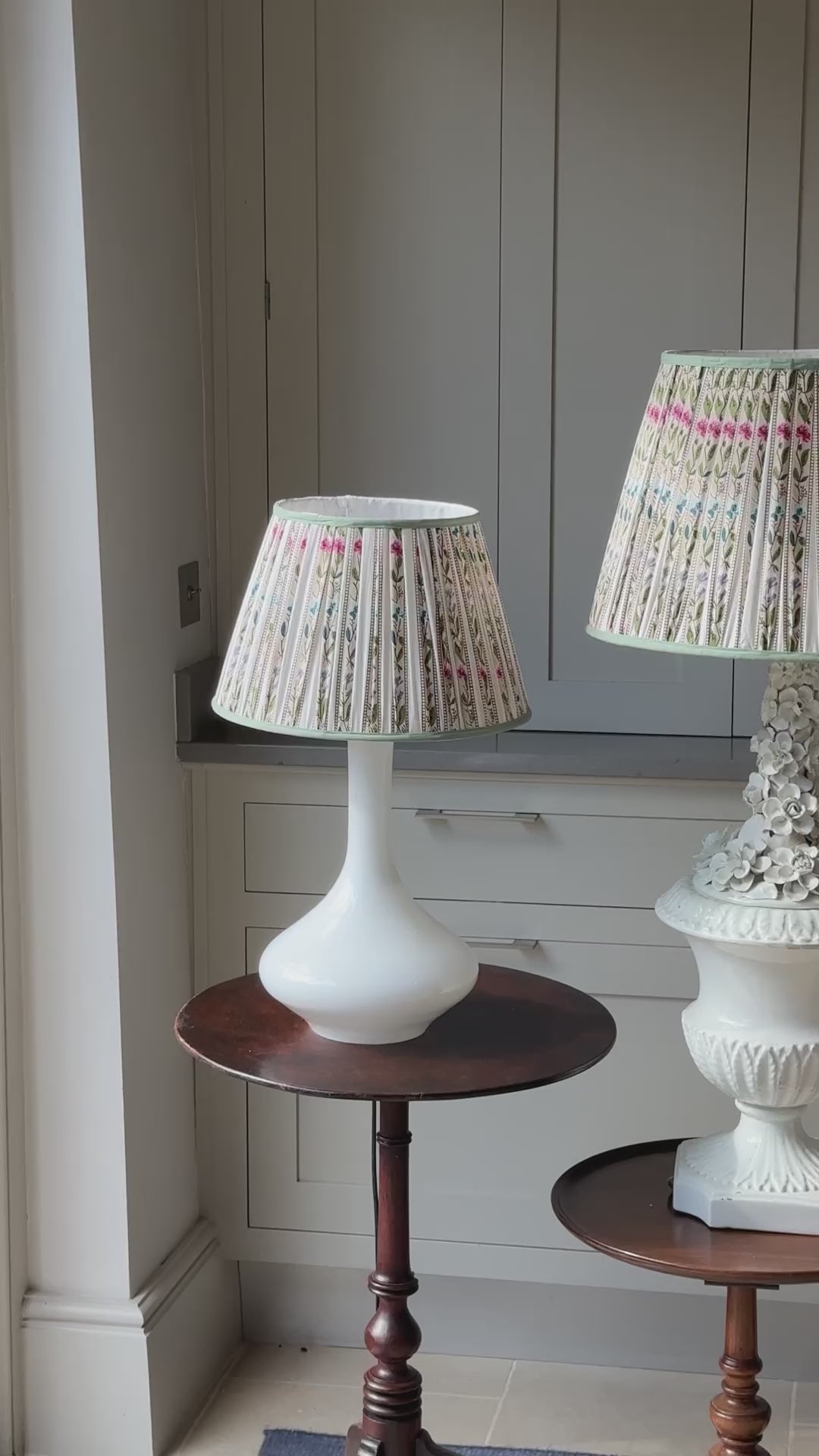 Medium Ivory Lampshade with striped pink, green leave and fuchsia pattern (16 inch)