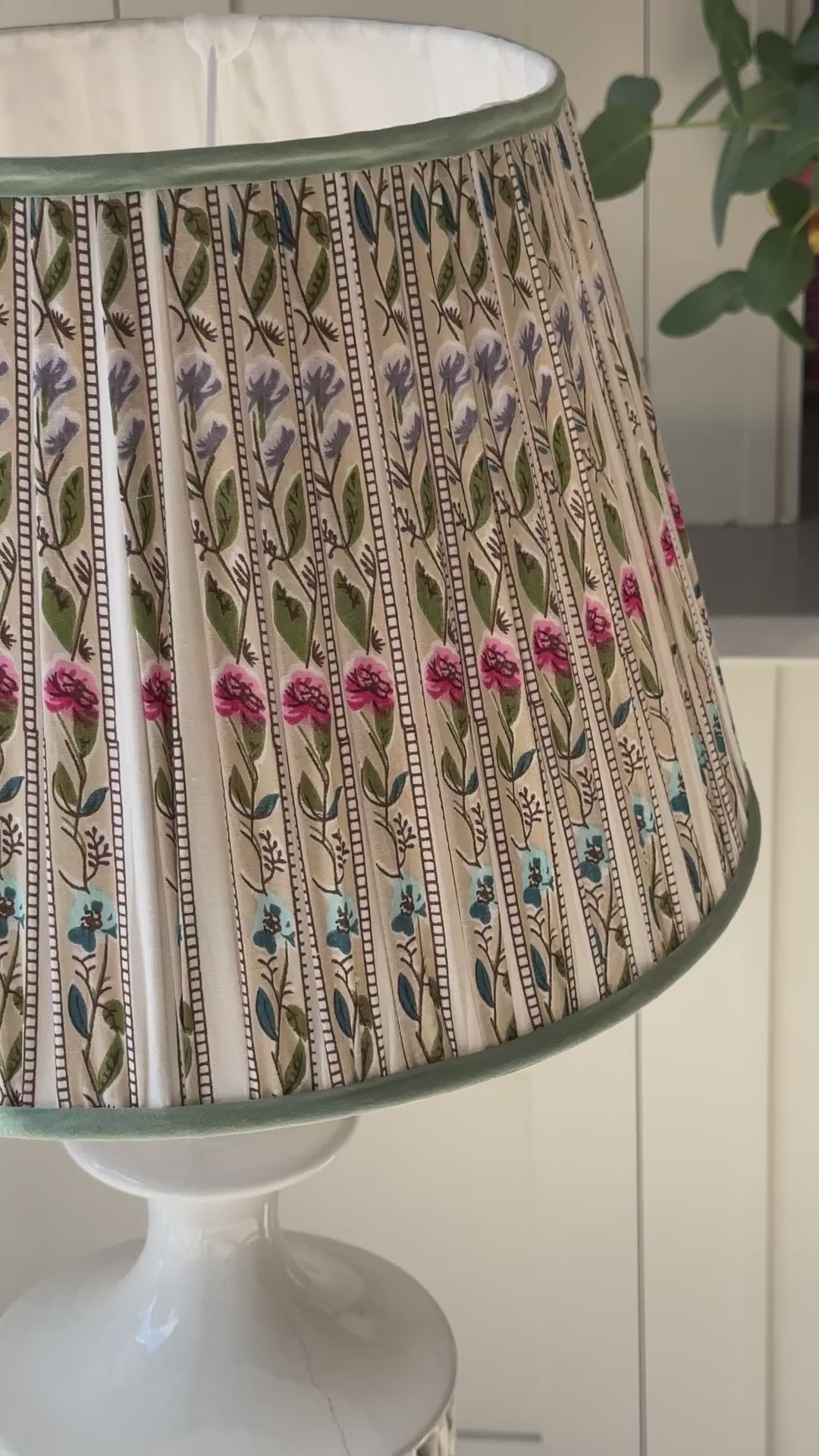 Small Ivory Lampshade with striped pink, green leaves and fuchsia pattern (14 inch)