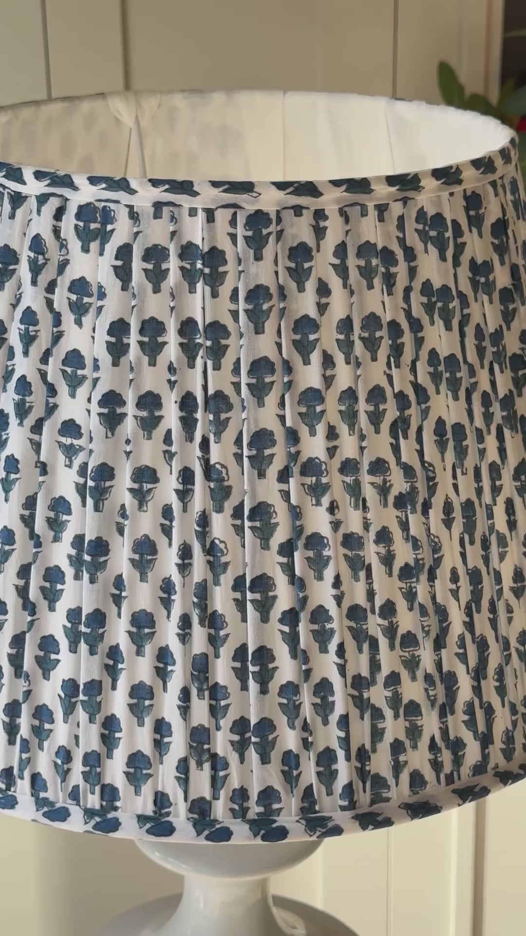 Small White Lampshade with blue flowers (14 inch)