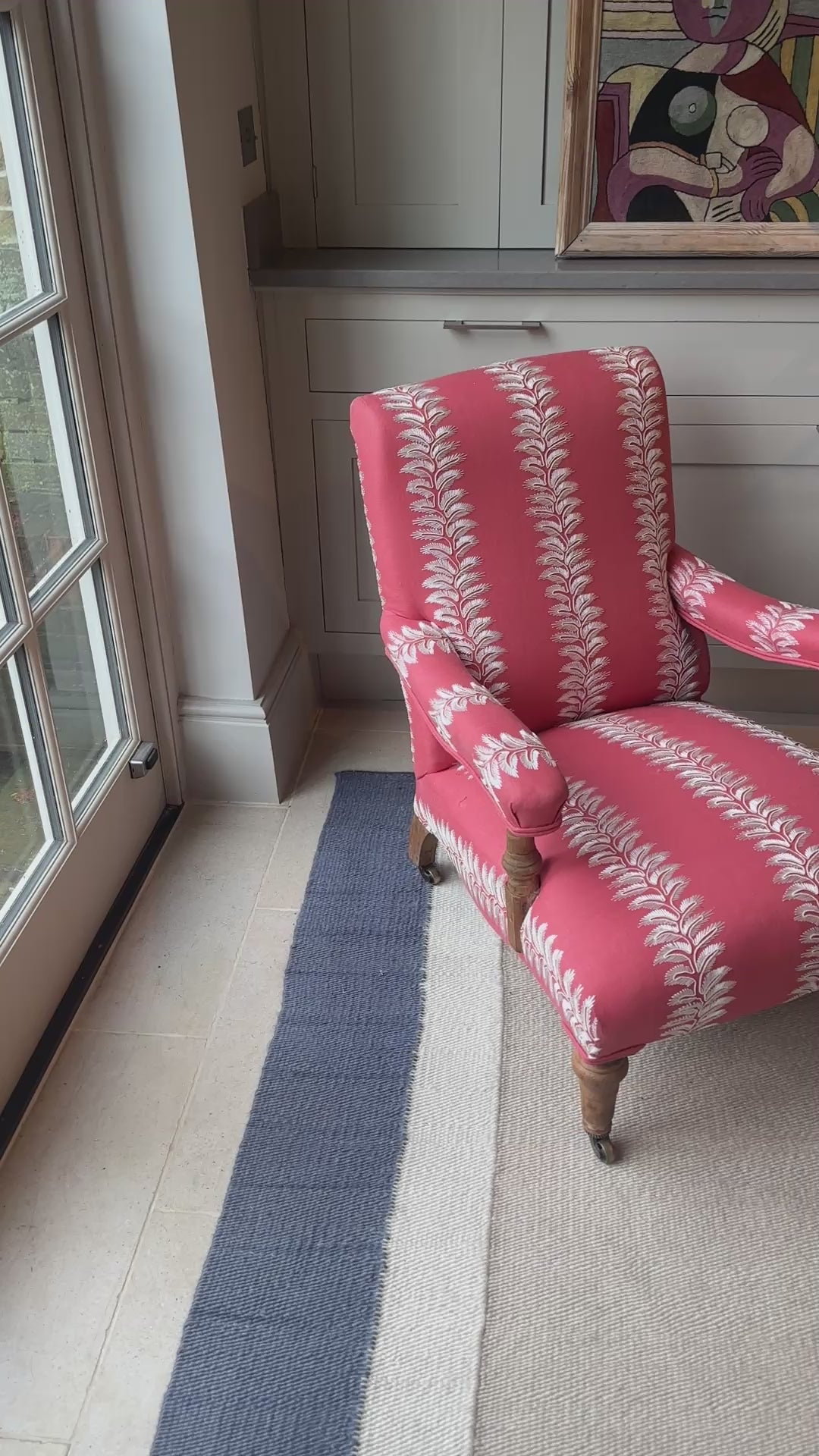 Oak Country house open armchair reupholstered in GP & J Baker New Bradbourne - coral.