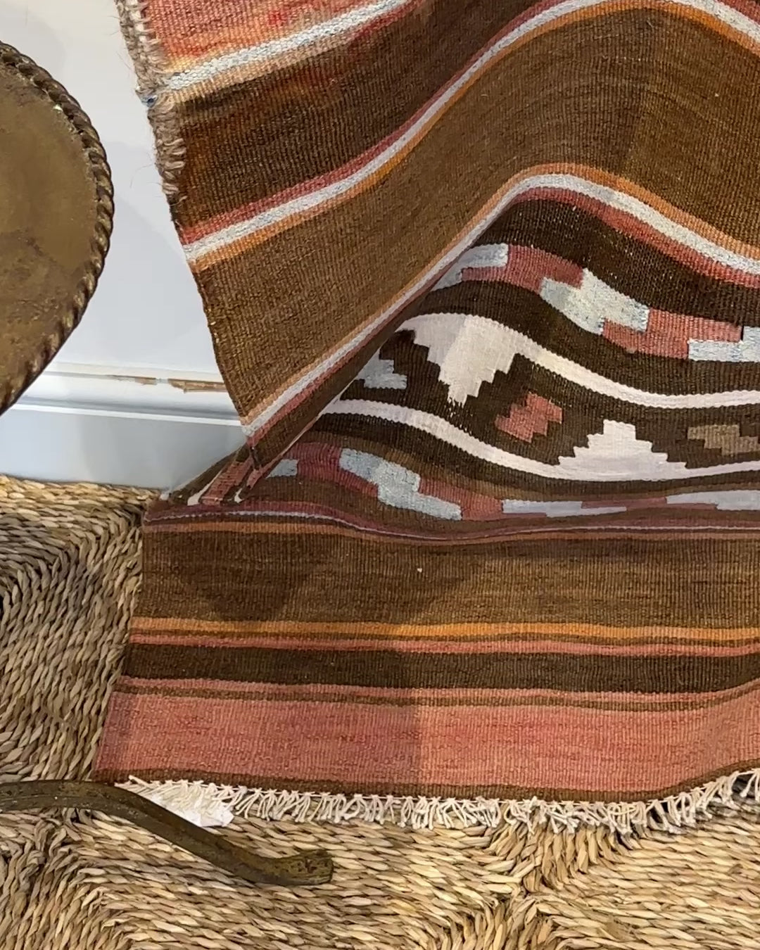 Really gorgeous vintage Persian Qashqai rug with pink and brown tones.